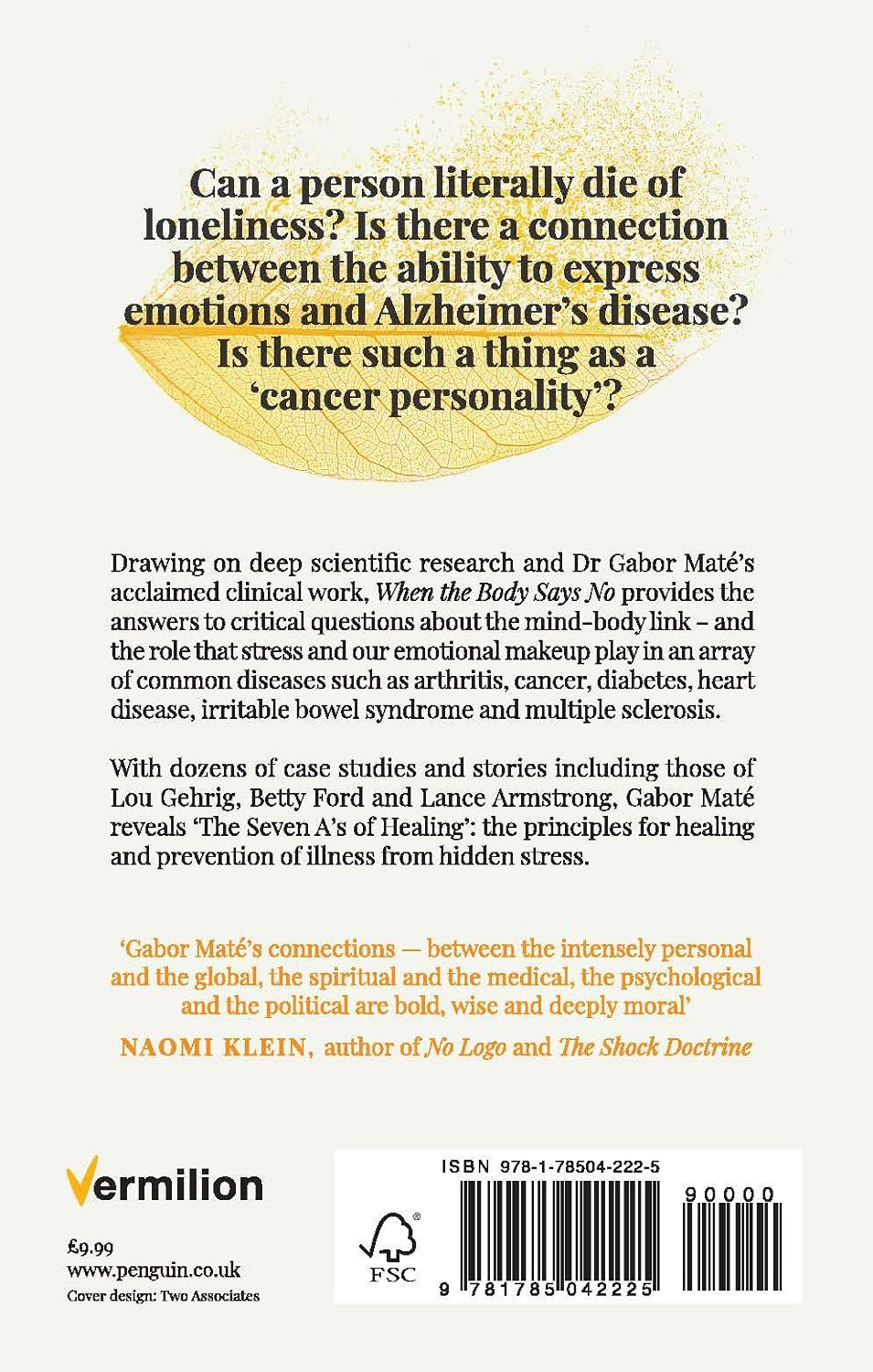 When the Body Says No provides the answers to critical questions about the mind-body link – and the role that stress and our emotional makeup play in an array of common diseases.